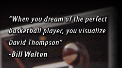 Sports legend David Thompson was the player who revolutionized "above the rim" basketball. Inventor of the "alley oop," conqueror of UCLA, and owner of a 73 point game- the only player besides Wilt Chamberlain to do so - Thompson's career proved once and for all that a smaller guy can take a dominant role in a big man's game.